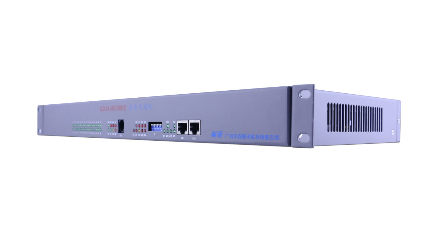 GD34-8000B 型 混合语音光端机是广州天烁通讯科技有限公司根据铁通运营商的组网网络及其市场需求,在GD34-8000 型 语音光端机设备的基础上开发生产的具有多业务接口的,可以混合接入的多功能语音设备。可以完成及实现语音、数据和图象等信号的混合传输,同时提供最多4*E1的2M支路、2*100Mbps的快速以太网接口数据通道及30线的语音或数据业务接口等。语音接口可以同时混合提供环路电话、磁石电话、2/4线音频、2/4线E&M、RS232数据等,经混合复用后进行光纤等长距离传输。本设备能特别满足同时对小容量2M支路租用、高速宽带数据组网、语音电话接入等需求的点对点局间中继链接或终端用户,可以被广泛应用于邮电、电力、铁路、水利、油田、银行等大客户接入及各大运营商使用。