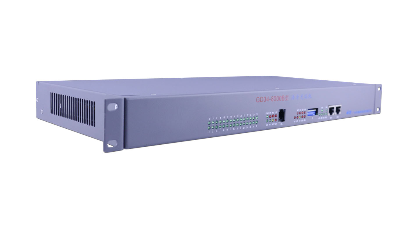 GD34-8000B 型 混合语音光端机是一款可以混合接入的多业务综合传输设备,可以向用户提供选择光纤传输接入或E1传输接入。比如可以完成‘OPT接入多业务综合语音系统’和‘OPT接入、E1接入混合语音系统’,下行业务接口可以提供4*E1支路、2*100M线速率以太网、30线语音电话等。系统名称定义在设备后面板标记,设备名称定义在前面板标记。